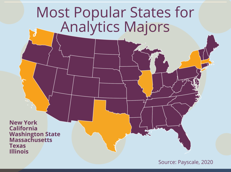 Metropolitan areas will have the highest number of available business analyst jobs. Top paying states for data analysts are:
